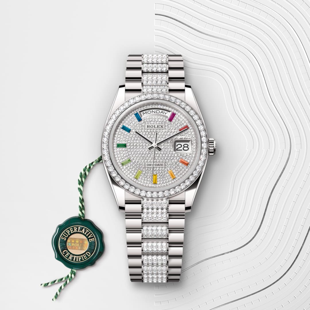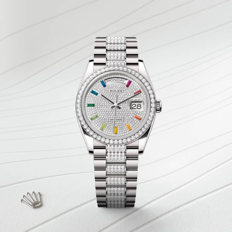 Rolex Day-Date 36 Oyster, 36 mm, white gold and diamonds M128349RBR-0012